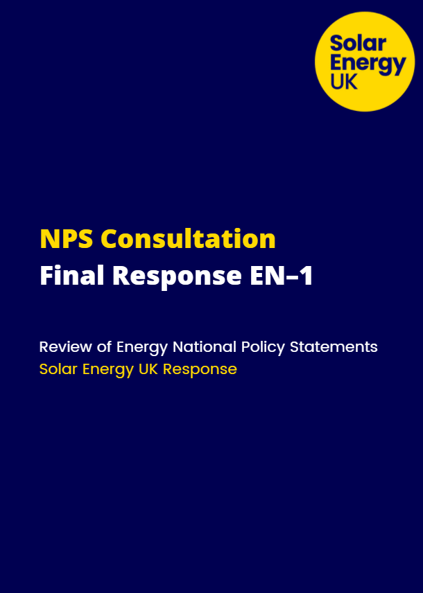The solar industry very much welcomes the addition of guidance on solar PV to the National Policy Statement for Renewable Energy Infrastructure. However, there are several provisions which could be strengthened, which we have outlined in our industry response to the BEIS led consultation.